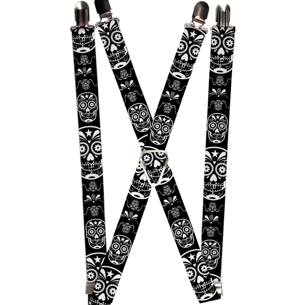 Suspenders – 1.0" – Sugar Skulls Black/White
