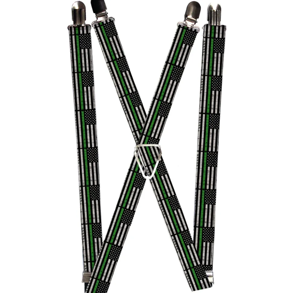 Suspenders - 1.0" - Thin Green Line Flag Weathered Black/Gray/Green