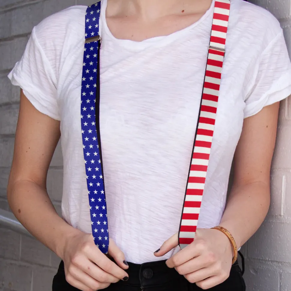 Suspenders - 1.0" - United States Flag Split Stars Blue/White + Stripes Red/White