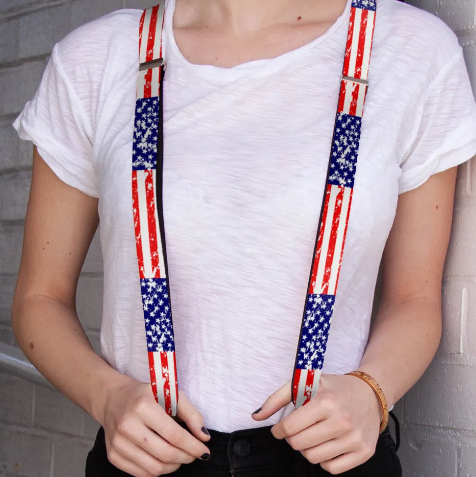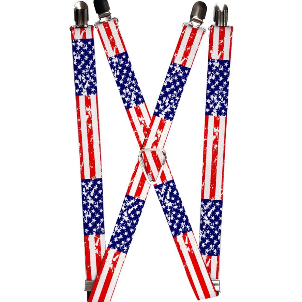 Suspenders - 1.0" - United States Flags CLOSE-UP Weathered