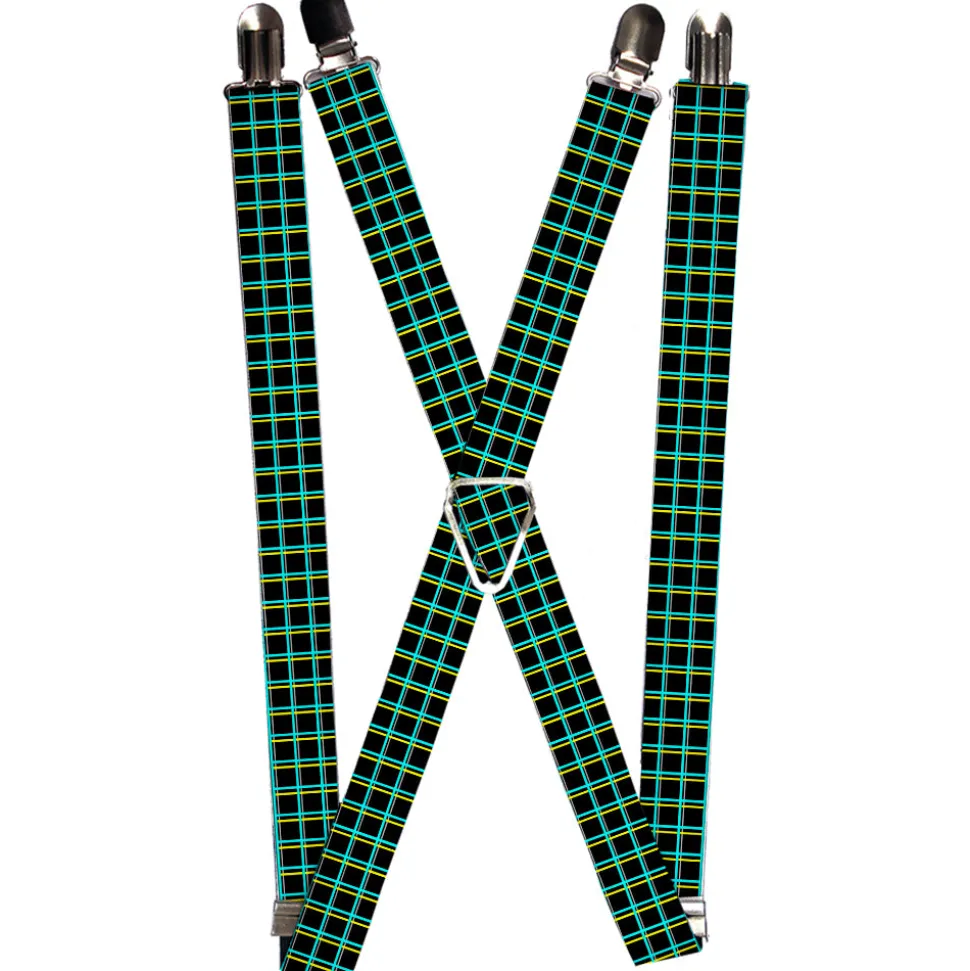 Suspenders - 1.0" - Wire Grid Black/Turquoise/Yellow