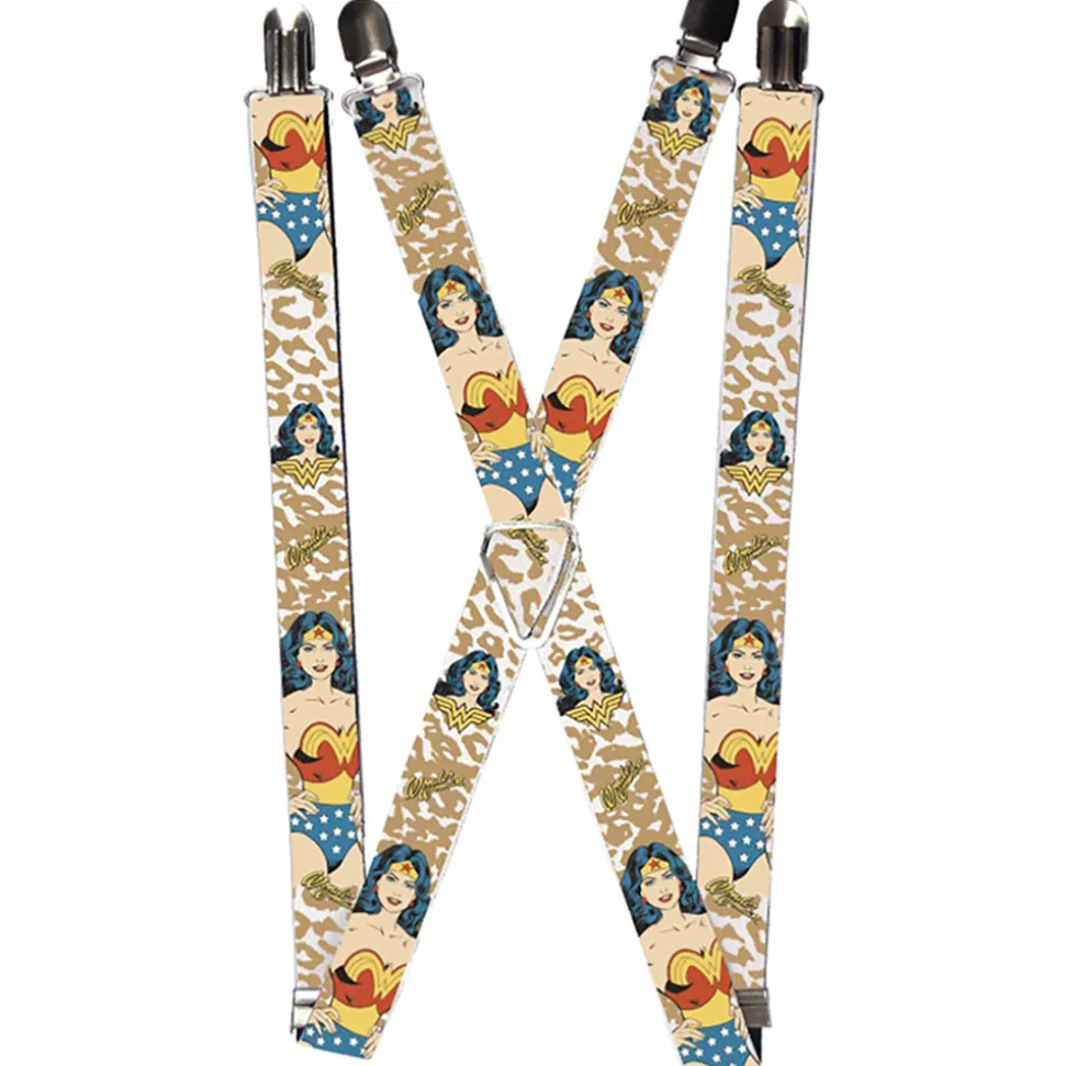 These suspenders are a great way to make a fashion statement! They are elastic with steel-plated hardware, 1.0 inch wide, and adjust to fit most people. This product is Made in USA by Buckle-Down, Inc. and Officially Licensed by DC Comics.