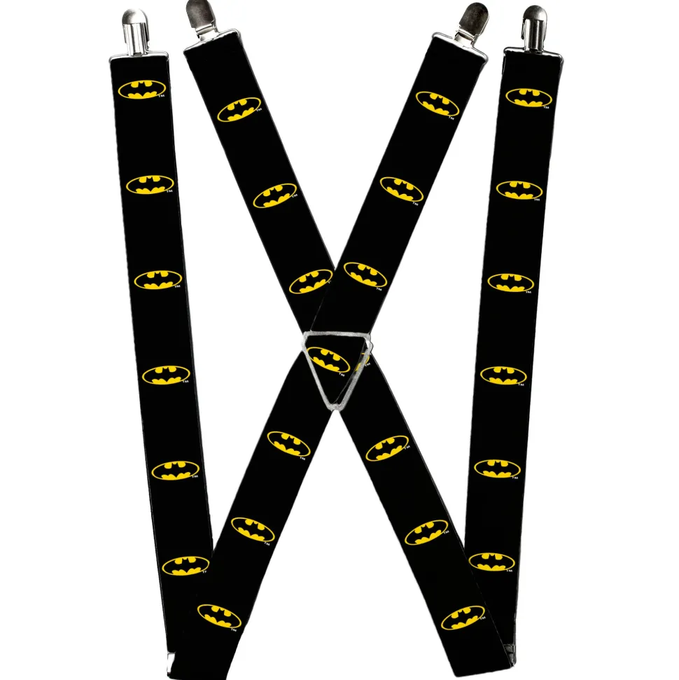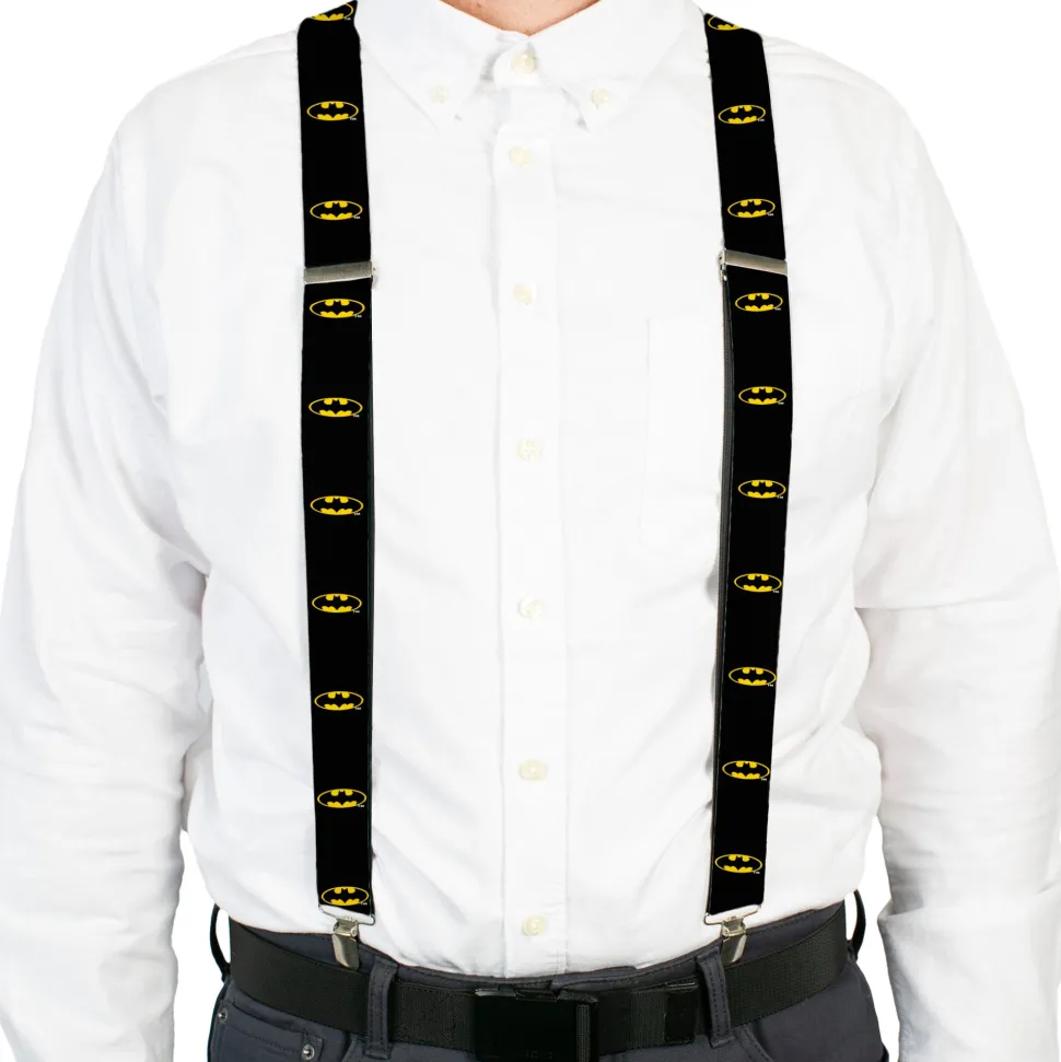 These suspenders are a great way to make a fashion statement! They are elastic with steel-plated hardware, 1.5 inch wide, and adjust to fit most people. This product is Assembled in the USA by Buckle-Down and Officially Licensed by DC Comics.