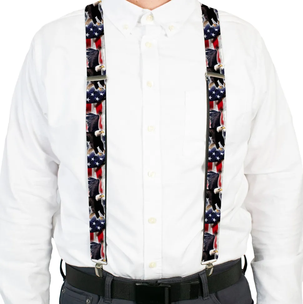 These suspenders are a great way to make a fashion statement! They are elastic with steel-plated hardware, 1.5 inch wide, and adjust to fit most people. This product is Assembled in the USA by Buckle-Down and Officially Licensed by Buckle-Down.