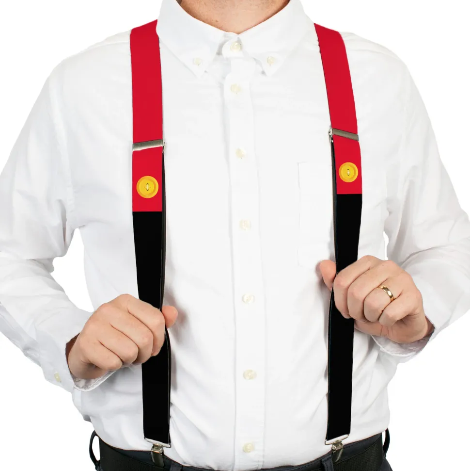 These suspenders are a great way to make a fashion statement! They are elastic with steel-plated hardware, 1.5 inch wide, and adjust to fit most people. This product is Assembled in the USA by Buckle-Down, Inc. and Officially Licensed by Disney.