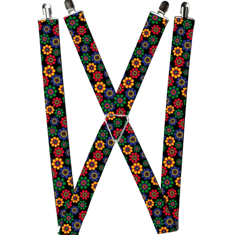Suspenders – 1.5" – Psychedelic Daisies Black/Multi Color