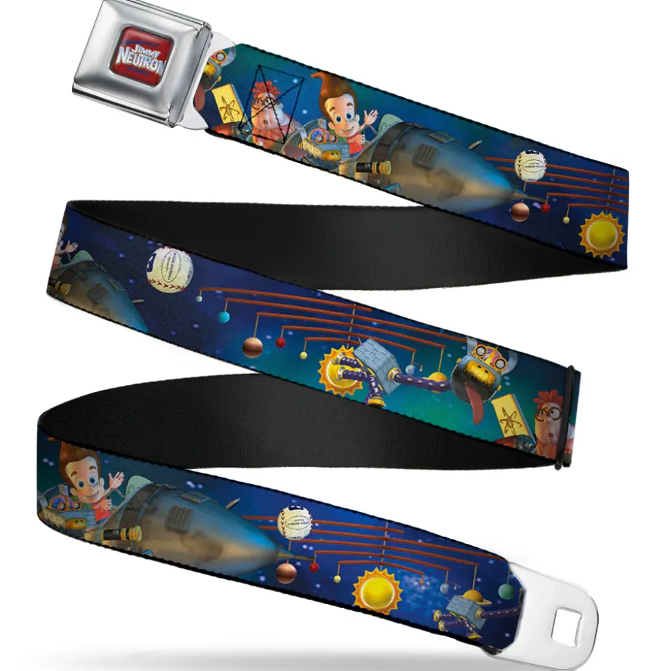 The Adventures of Jimmy Neutron Logo Full Color Red/Blues Seatbelt Belt – Jimmy Neutron, Carl & Goddard Flying in Space Webbing