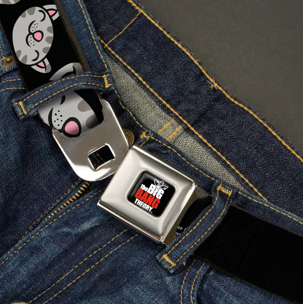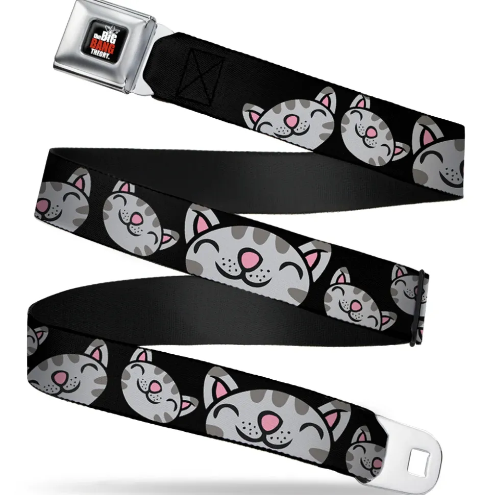 THE BIG BANG THEORY Full Color Black White Red Seatbelt Belt – Mutli Soft Kitty Face Black Webbing