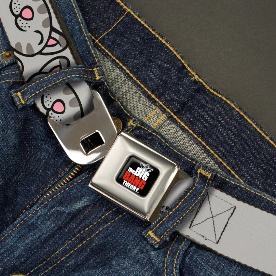 THE BIG BANG THEORY Full Color Black White Red Seatbelt Belt – Soft Kitty Face CLOSE-UP Gray Webbing