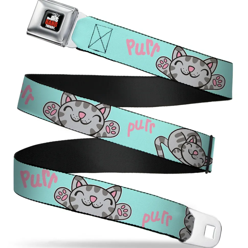 THE BIG BANG THEORY Full Color Black White Red Seatbelt Belt – Soft Kitty Poses Pale Turquoise/Pink Webbing
