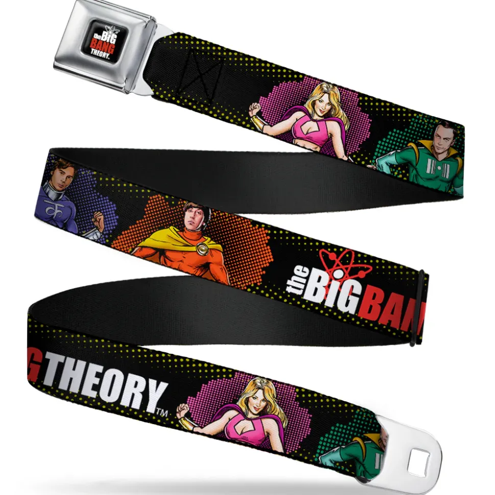 THE BIG BANG THEORY Full Color Black White Red Seatbelt Belt – THE BIG BANG THEORY Superhero Character Poses Black Webbing