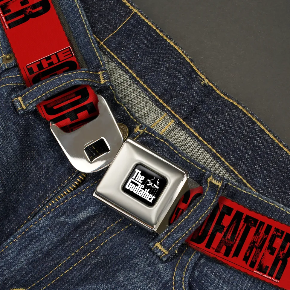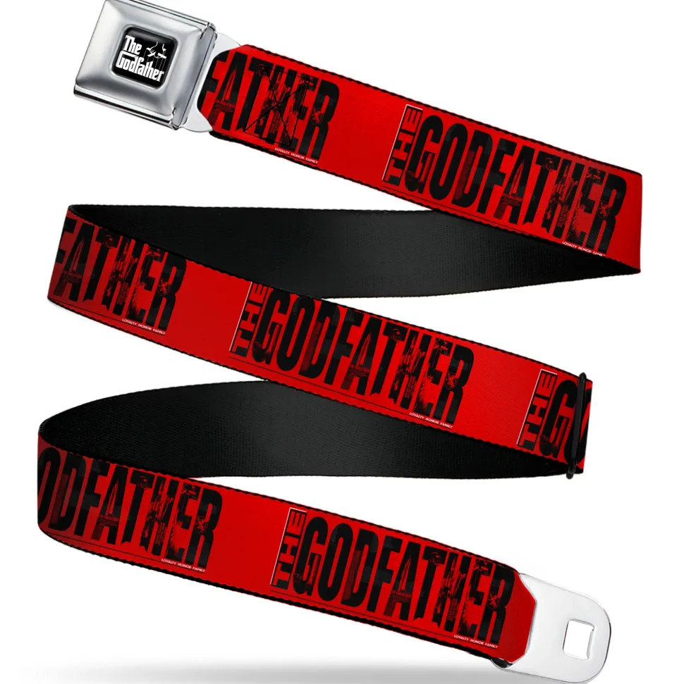 THE GODFATHER Title Logo Full Color Black/White Seatbelt Belt – THE GODFATHER Weathered Text Logo Red/Black Webbing
