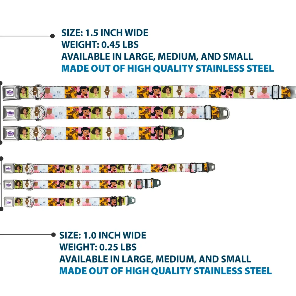 THE PROUD FAMILY Title Logo Full Color White/Purple Seatbelt Buckle Collar – The Proud Family 6-Character Block Poses