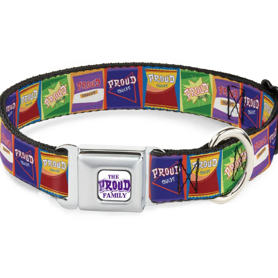 THE PROUD FAMILY Title Logo Full Color White/Purple Seatbelt Buckle Collar – The Proud Family PROUD SNACKS Logo Blocks Multi Color