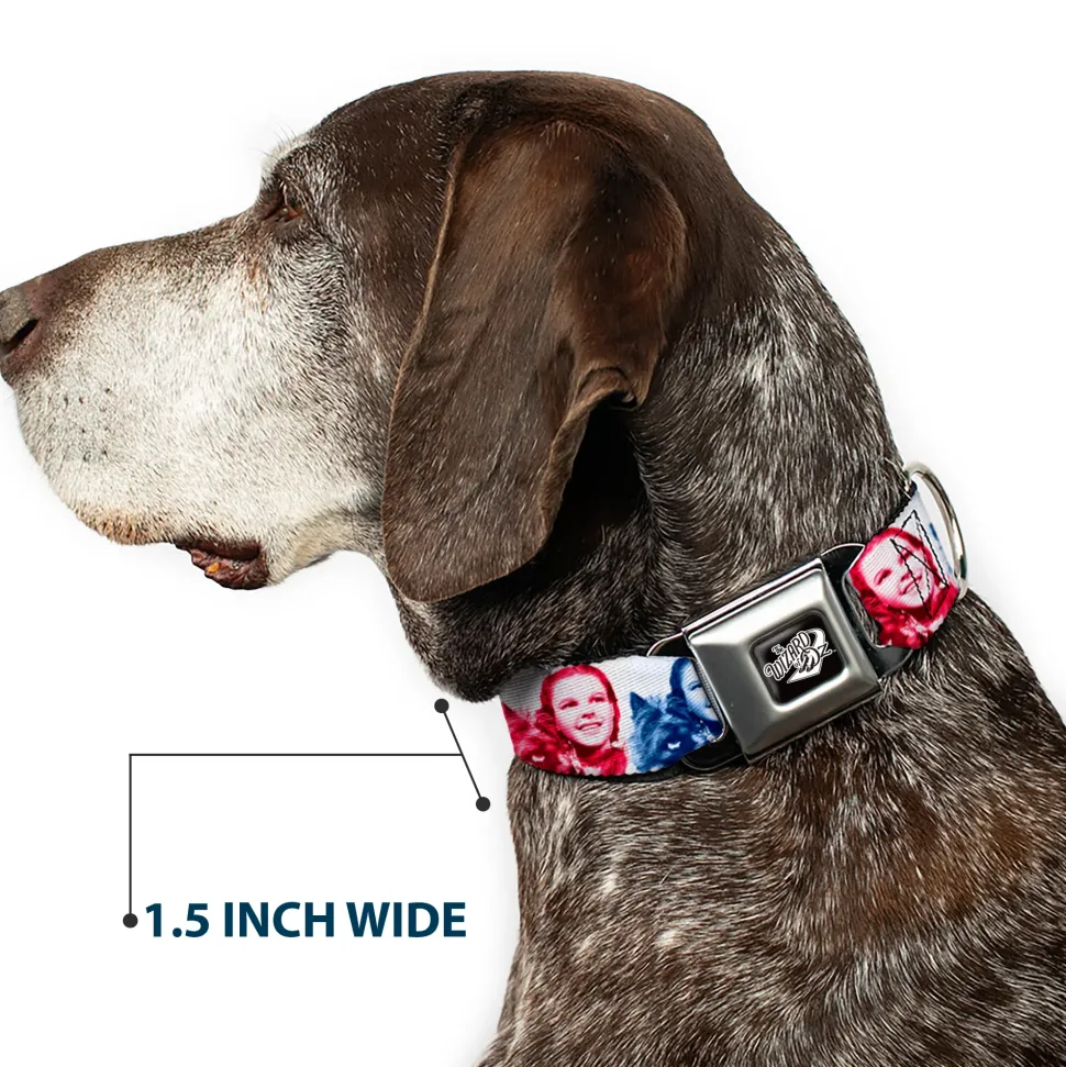 THE WIZARD OF OZ Title Logo Full Color Black/White Seatbelt Buckle Collar – The Wizard of Oz Dorothy and Toto Pose Blocks Blues/Yellows/Reds