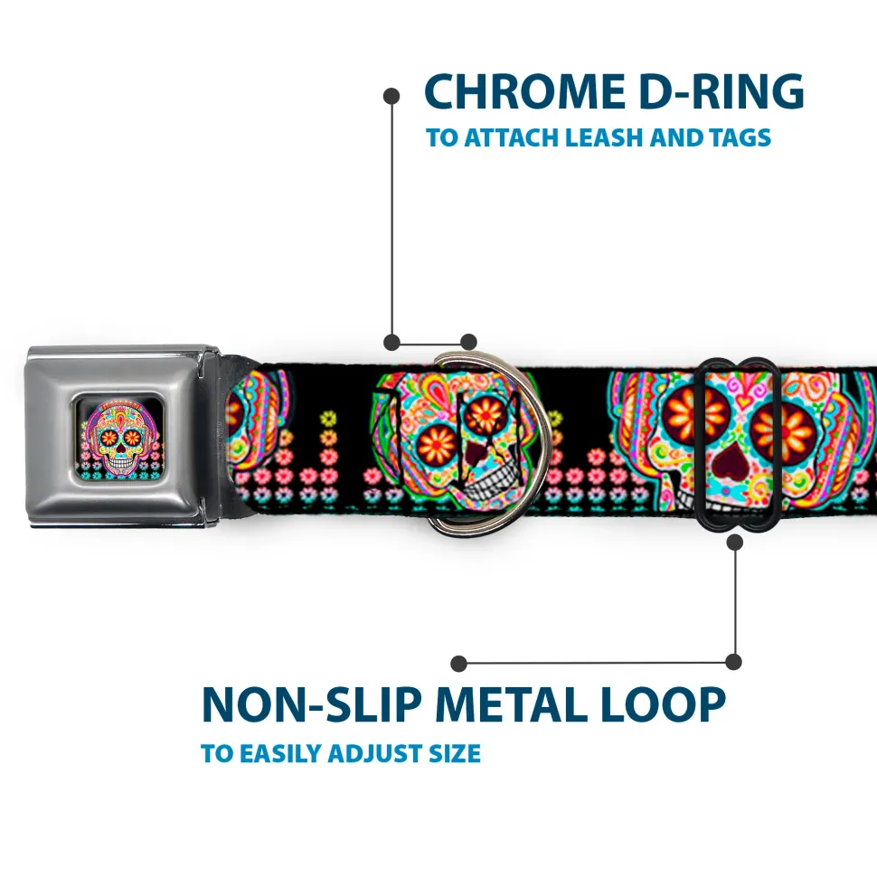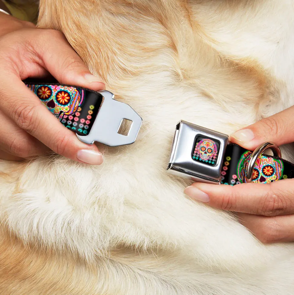 Your dog will be the talk of the town when people notice they’re wearing this awesome SeatBelt Dog Collar! Made from high-density polyester and durable steel components, this collar is built to last. It features beautiful vibrant artwork. The buckle is a miniature authentic SeatBelt Buckle, so you press the center button to release the clasp. This product is Made in USA by Buckle-Down Inc. and officially licensed by Thaneeya McArdle.