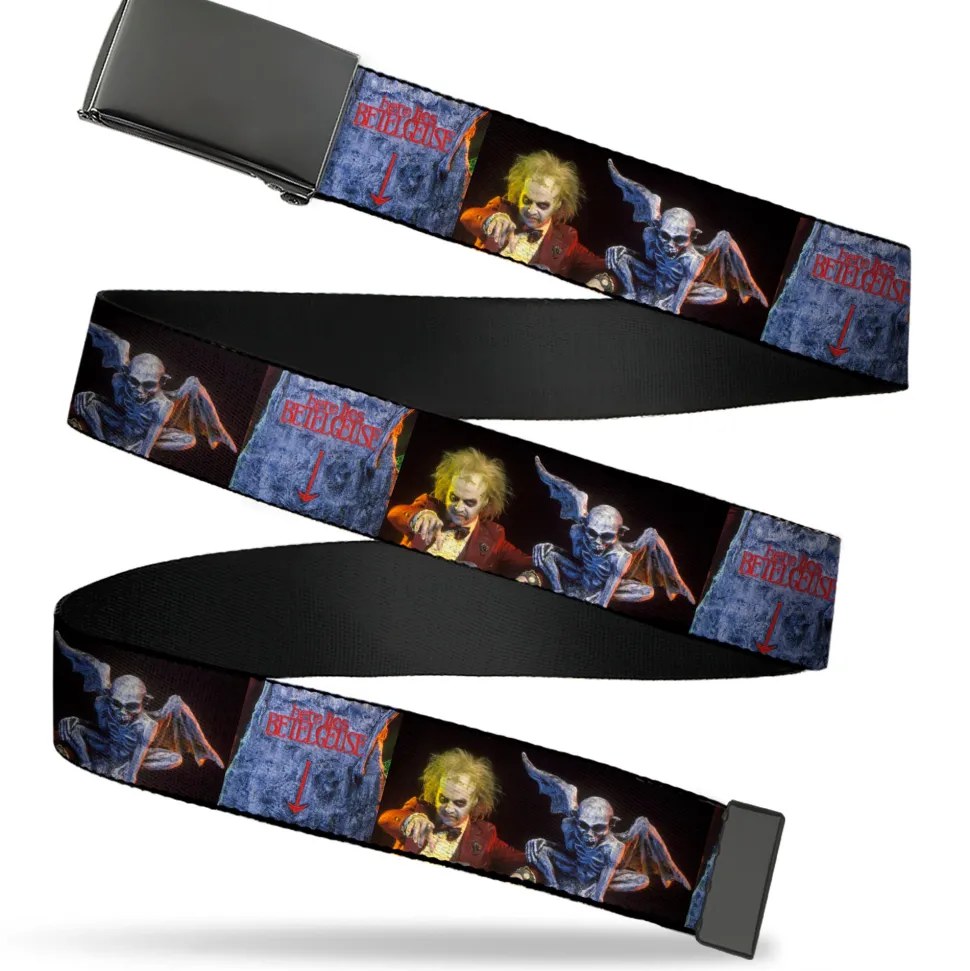 Web Belt Blank Black Buckle - Beetlejuice Graveyard Gargoyle Pose Black Webbing