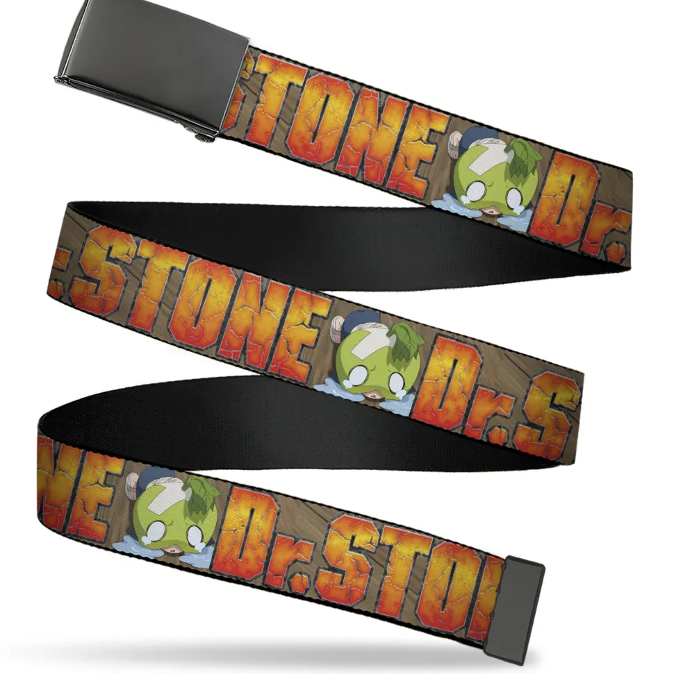 Web Belt Blank Black Buckle – DR. STONE Title Logo and Suika Crying Pose Browns Webbing