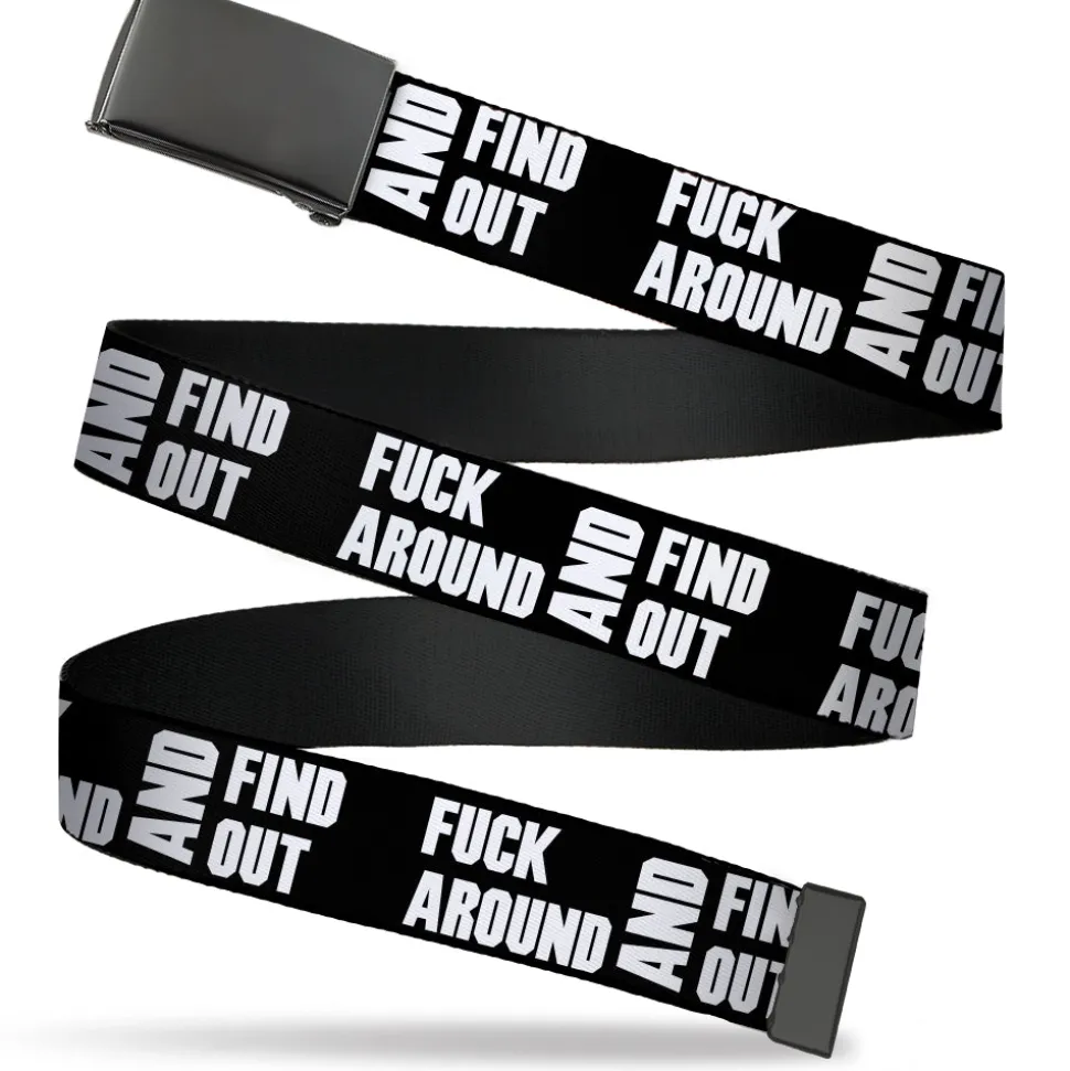 Web Belt Blank Black Buckle – FAFO FUCK AROUND AND FIND OUT Bold Black/White Webbing