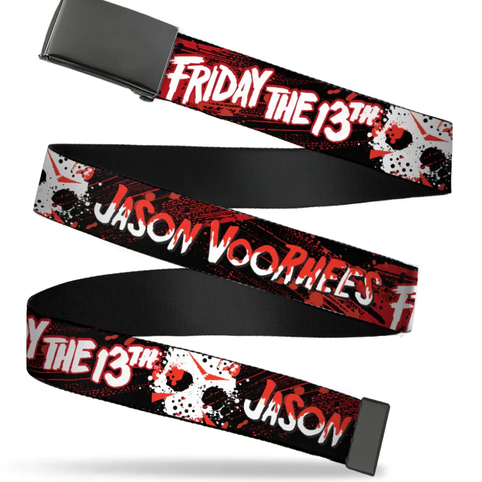 This unique web belt features a solid plain military-style clasp Buckle. It features beautiful artwork which is dyed into the fabric to ensure it looks great for years. This belt is available in 1.0″, 1.25″, and 1.5″ widths. 1.0″ wide belt is sized for children and adults with pants size 30 or lower. 1.25″ and 1.5″ wide belts are sized for adults, fitting up to pant size 42. This web belt is made from high-density nylon and steel. 1.5″ wide belt also has a bottle opener built into the back of the buckle! This product is Made in the USA by Buckle-Down Inc. and is officially licensed by Warner Bros. Horror Movies.