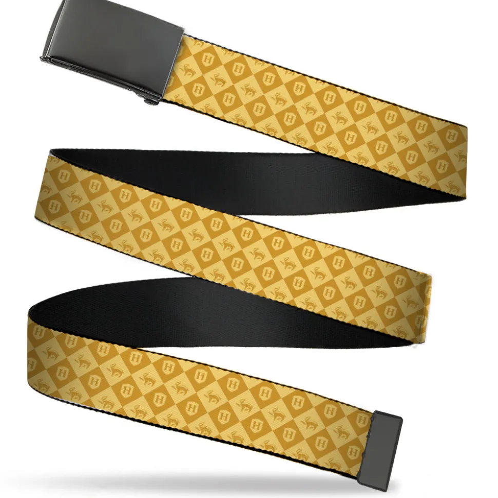 Web Belt Blank Black Buckle – Harry Potter Hufflepuff Icons Checker Yellows Webbing