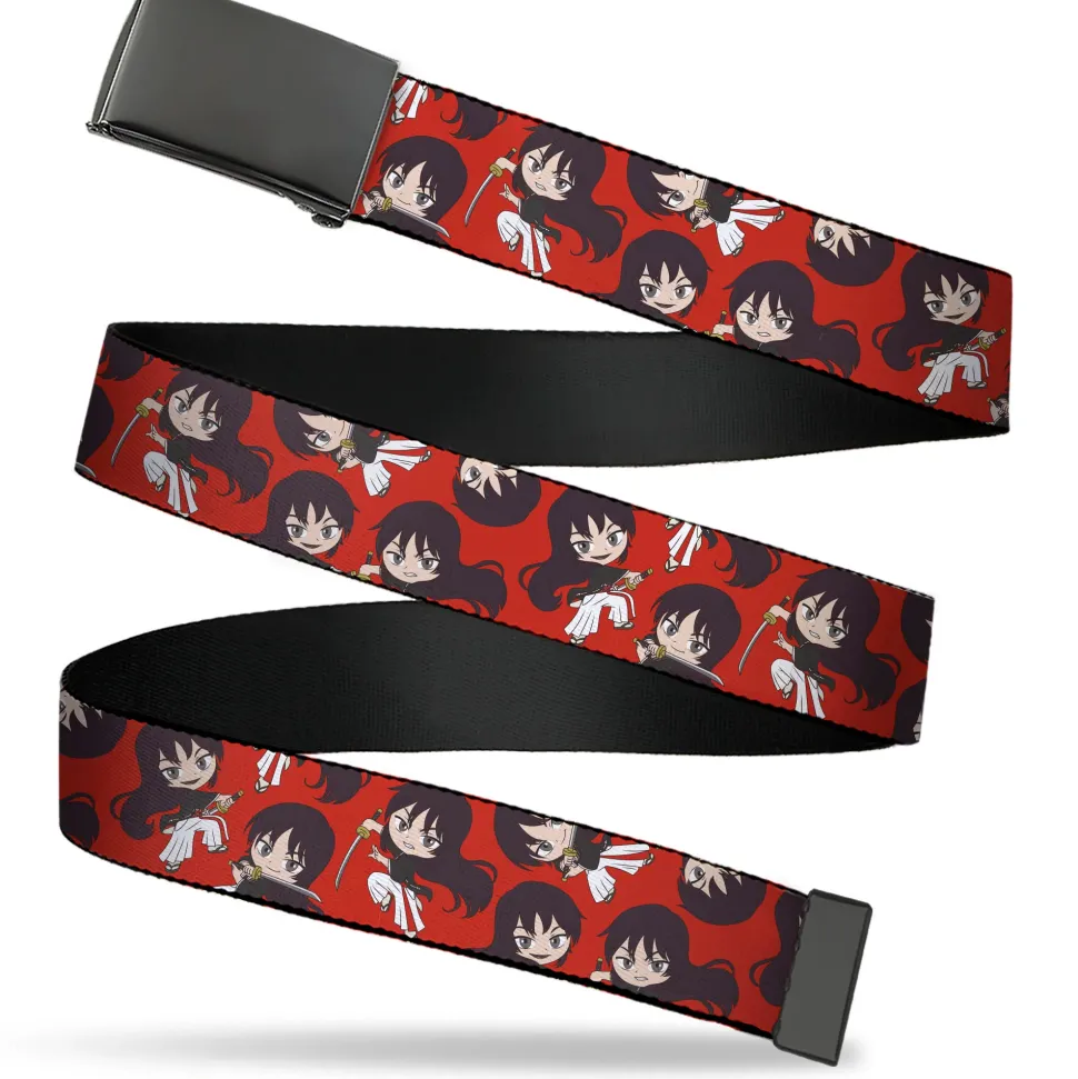 Web Belt Blank Black Buckle – Hell's Paradise Chibi Aza Toma Sword Poses Scattered Red Webbing