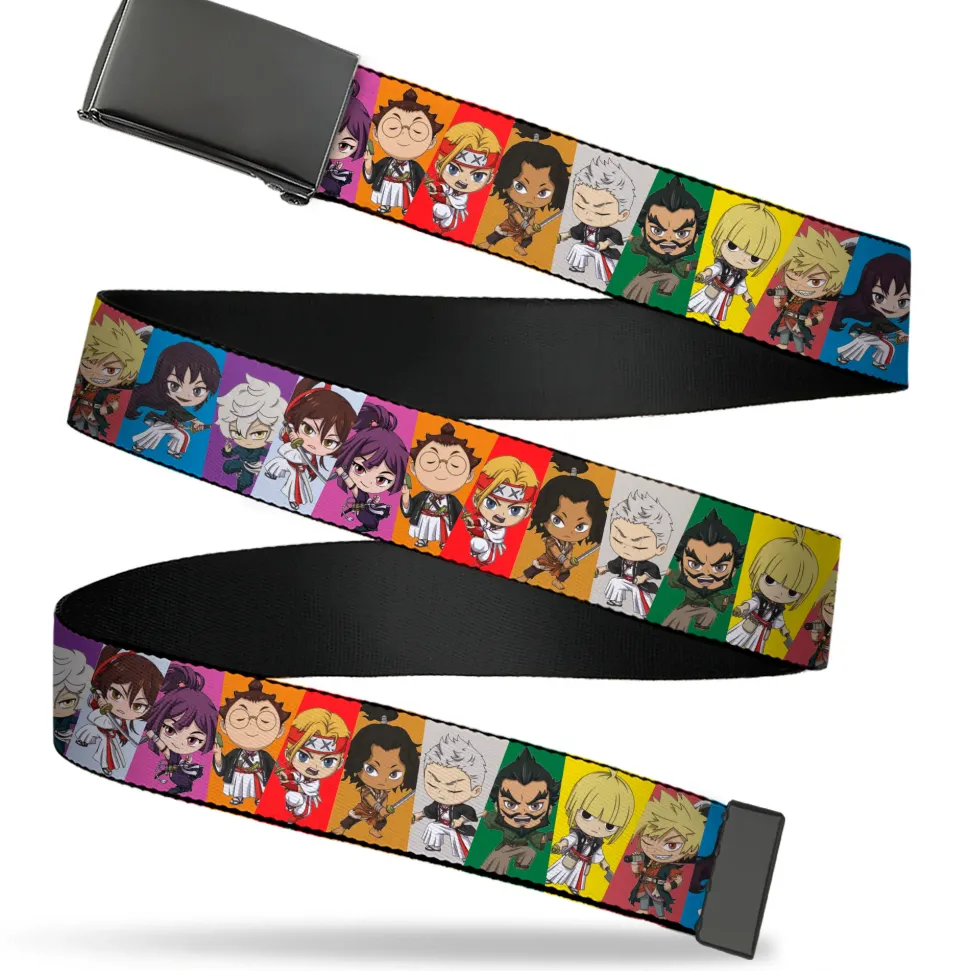 Web Belt Blank Black Buckle – Hell's Paradise Chibi Convicts and Yamada Clan Character Blocks Multi Color Webbing