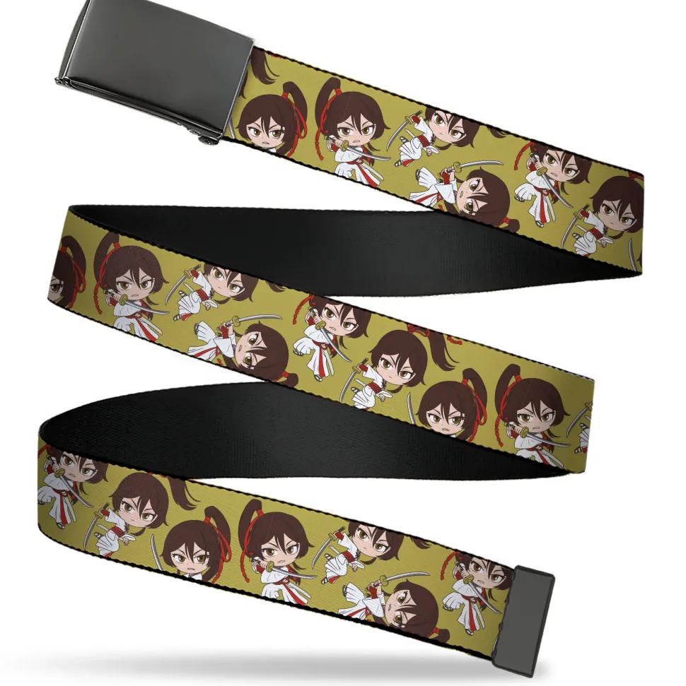 Web Belt Blank Black Buckle – Hell's Paradise Chibi Sagiri Sword Poses Scattered Golden Yellow Webbing