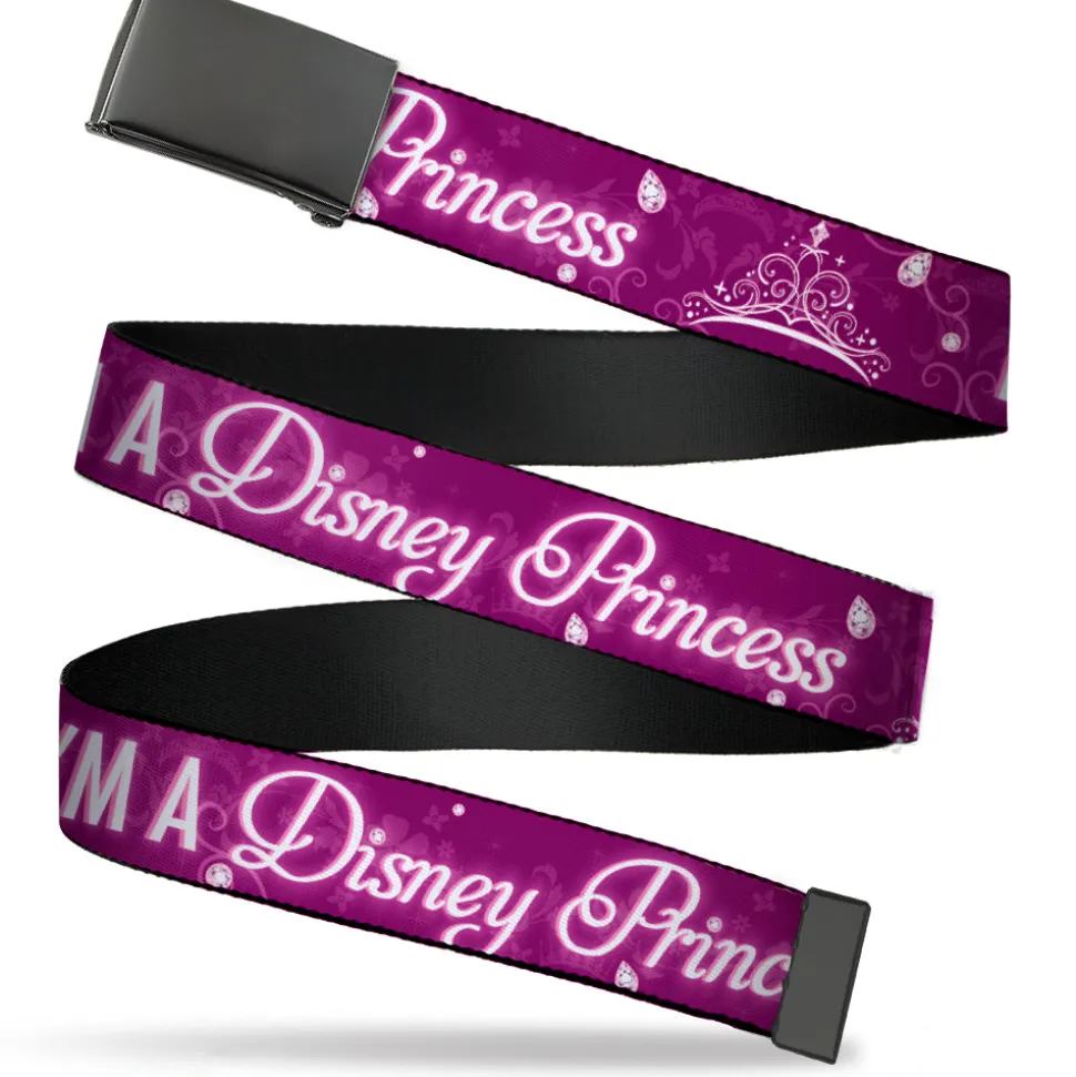 Web Belt Blank Black Buckle - I'M 99.9% SURE I'M A DISNEY PRINCESS Pinks/White Webbing
