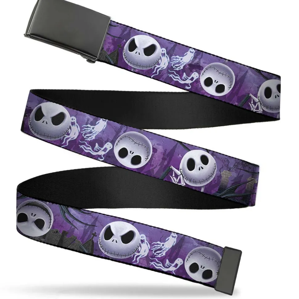 Web Belt Blank Black Buckle – Jack Expressions/Ghosts in Cemetery Purples/Grays/White Webbing