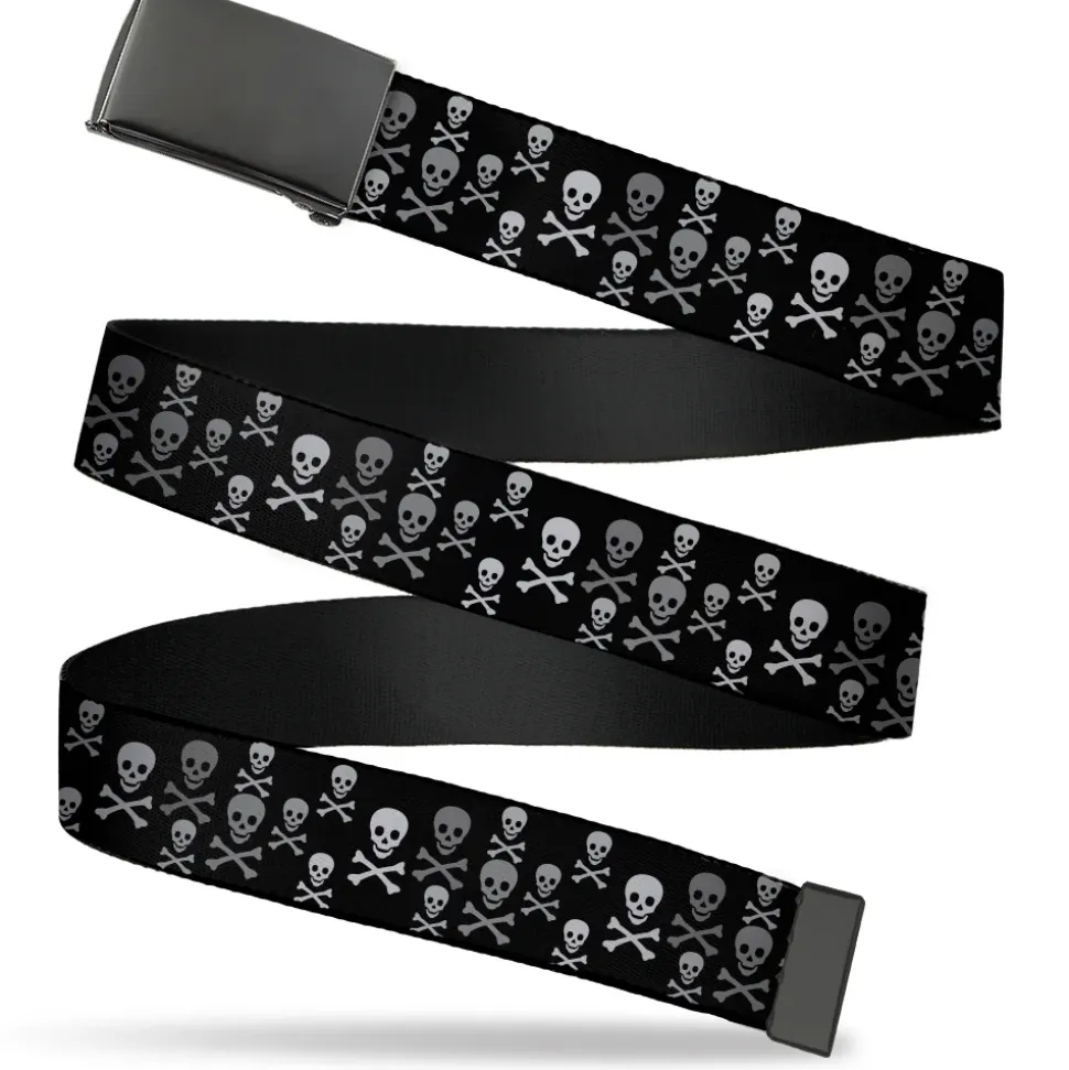 Web Belt Blank Black Buckle – Multi Skull Black/Gray Webbing