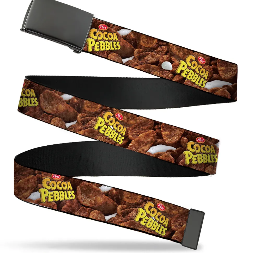 Web Belt Blank Black Buckle – POST COCOA PEBBLES Logo and Vivid Cereal Browns Webbing