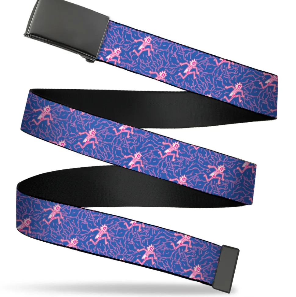 Web Belt Blank Black Buckle – Rick and Morty Rick Electric Shock Pose Blue Webbing