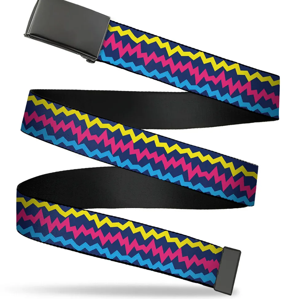 Web Belt Blank Black Buckle – Scribble Zig Zag Stripe Navy/Multi Color Webbing
