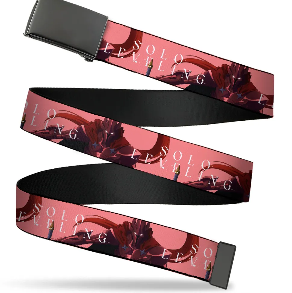 Web Belt Blank Black Buckle – SOLO LEVELING Blood-Red Commander Igris Pose and Title Logo Peach Webbing