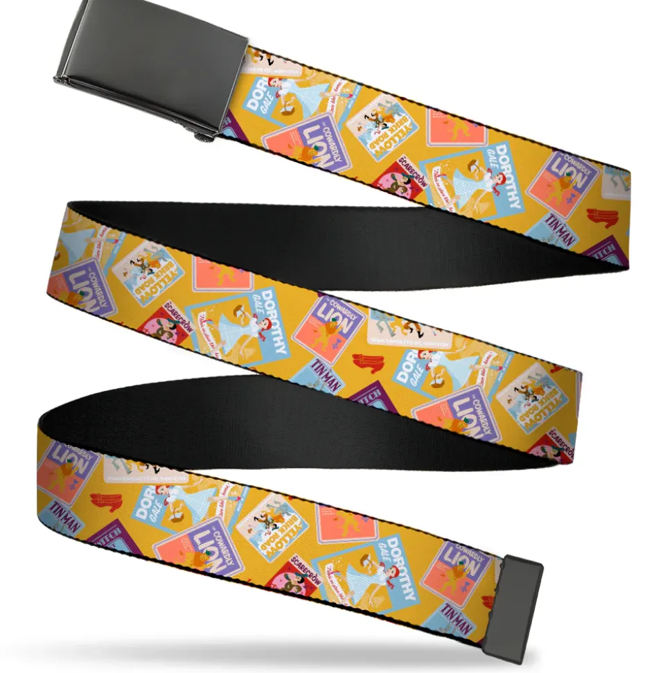 Web Belt Blank Black Buckle – The Wizard of Oz Characters Scenes and Icons Collage Yellow Webbing