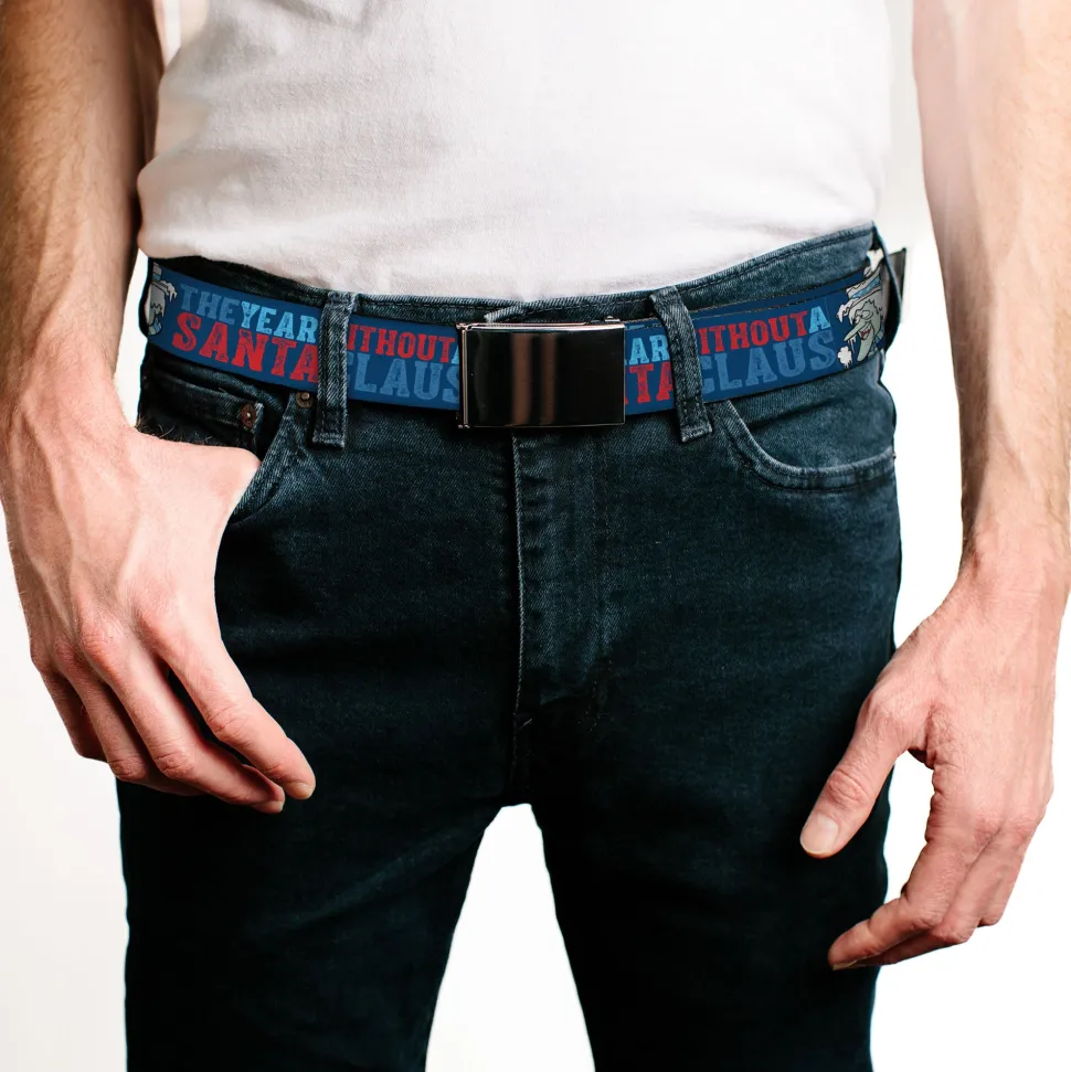 This unique web belt features a solid plain military-style clasp Buckle. It features beautiful artwork which is dyed into the fabric to ensure it looks great for years. This belt is available in 1.0″, 1.25″, and 1.5″ widths. 1.0″ wide belt is sized for children and adults with pants size 30 or lower. 1.25″ and 1.5″ wide belts are sized for adults, fitting up to pant size 42. This web belt is made from high-density nylon and steel. 1.5″ wide belt also has a bottle opener built into the back of the buckle! This product is Made in the USA by Buckle-Down Inc. and is officially licensed by Warner Bros. Holiday Movies.