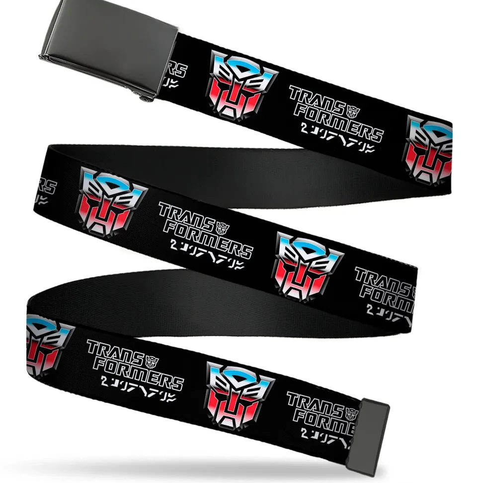 Web Belt Blank Black Buckle – TRANSFORMERS Autobots Cybertronian Icon Black/Blues/Red/White Webbing