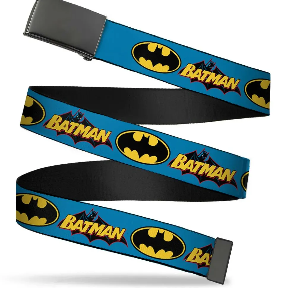 Web Belt Blank Black Buckle – Vintage Batman Logo & Bat Signal Blue Webbing