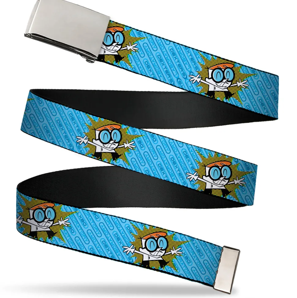 Web Belt Blank Chrome Buckle – Dexter's Lab Dexter Arms Up Pose and Text Blues Webbing