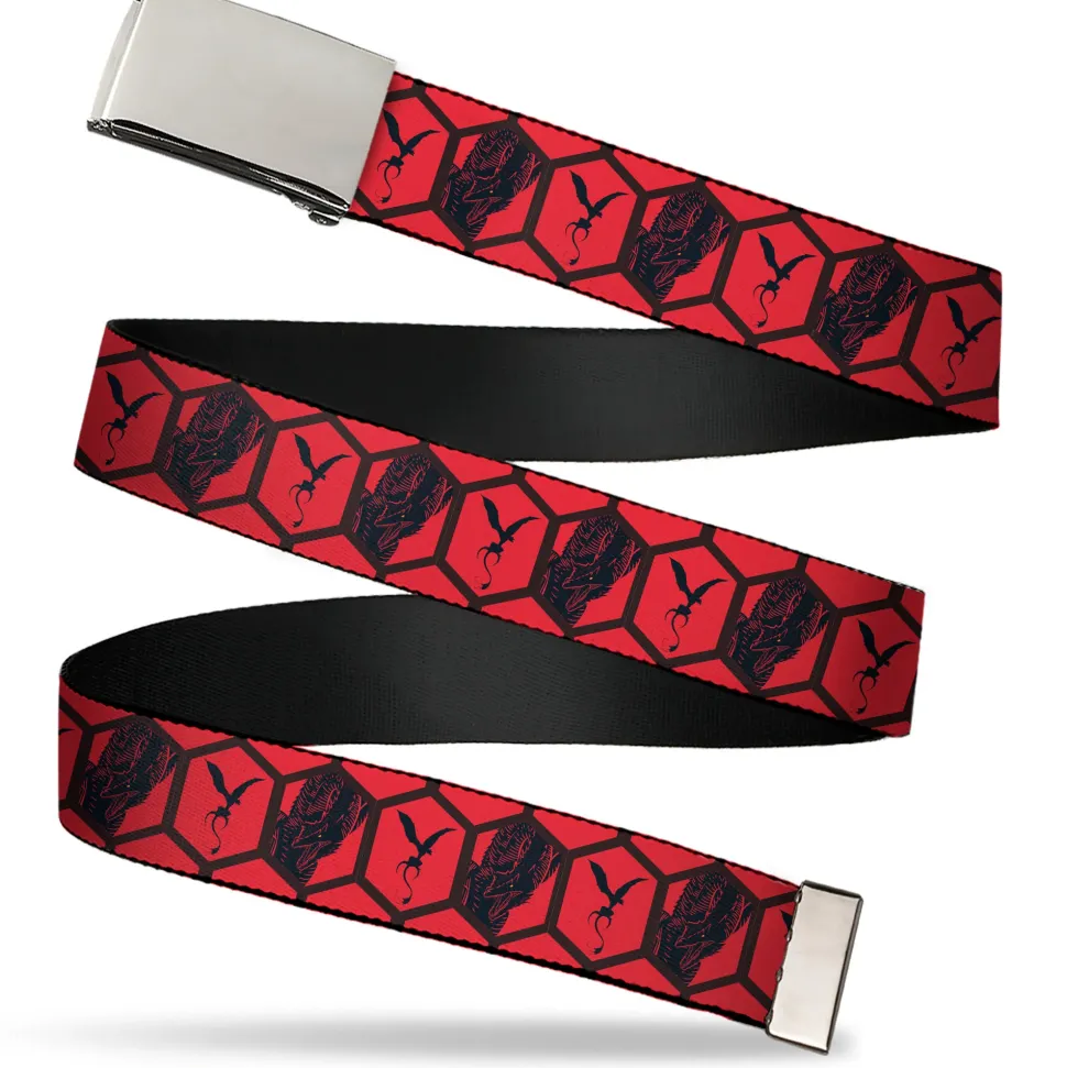 This unique web belt features a solid plain military-style clasp Buckle. It features beautiful artwork which is dyed into the fabric to ensure it looks great for years. This belt is available in 1.0″, 1.25″, and 1.5″ widths. 1.0″ wide belt is sized for children and adults with pants size 30 or lower. 1.25″ and 1.5″ wide belts are sized for adults, fitting up to pant size 42. This web belt is made from high-density nylon and steel. 1.5″ wide belt also has a bottle opener built into the back of the buckle! This product is Made in the USA by Buckle-Down Inc. and is officially licensed by House of the Dragon.