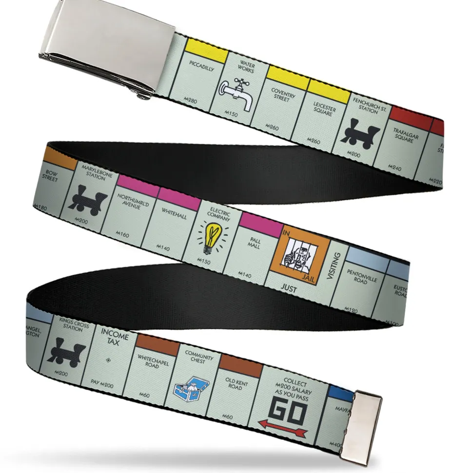 Web Belt Blank Chrome Buckle – Monopoly British UK Game Board Space Blocks Webbing