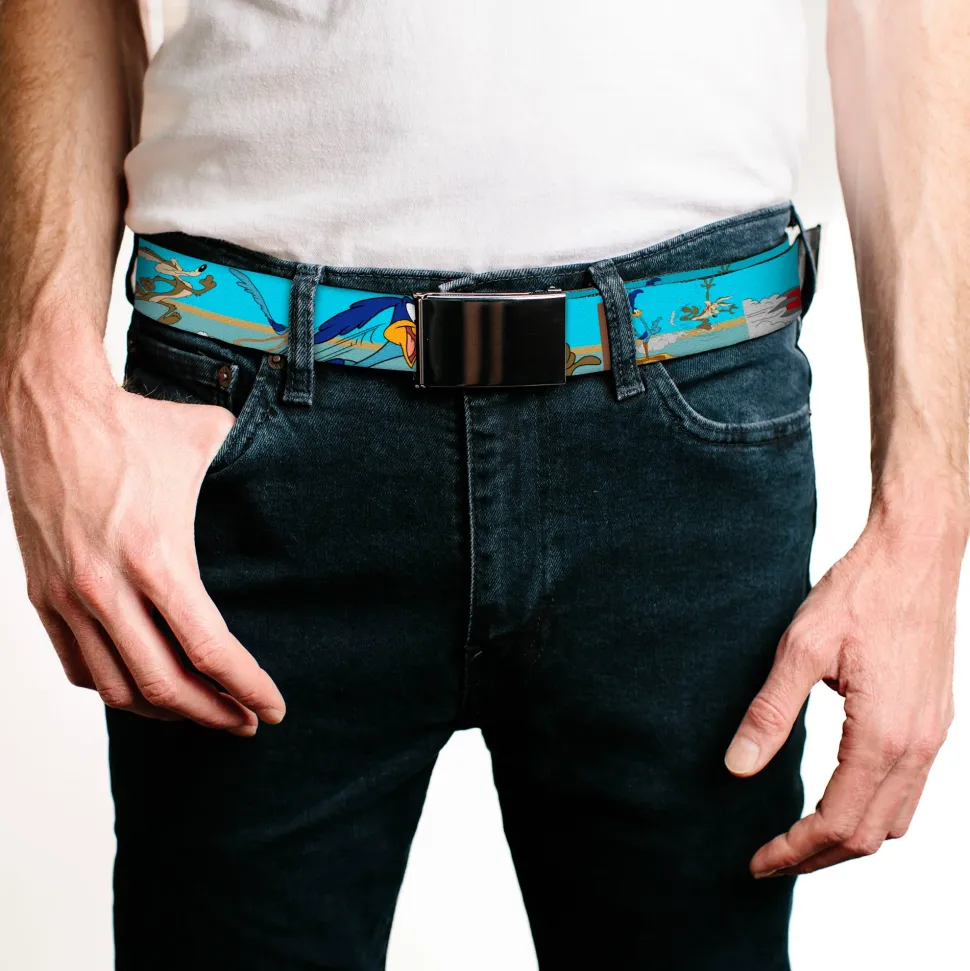 Web Belt Blank Chrome Buckle - Road Runner/Wile E. Coyote Scene2 Desert Webbing