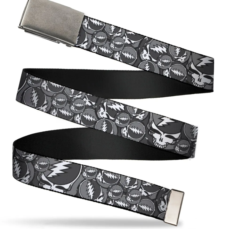 Web Belt Blank Matte Buckle – Steal Your Face Stacked Gray Webbing