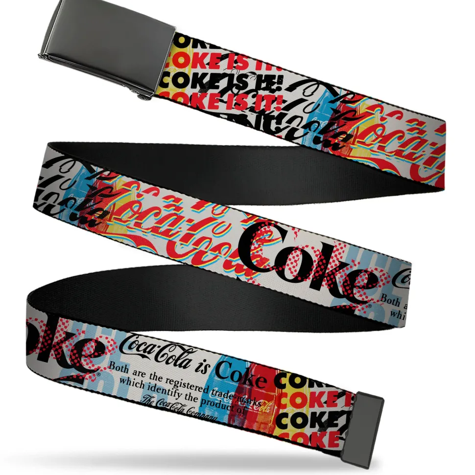 Web Belt Clamp Buckle - COKE IS IT! Pop Art Collage Multi Color Webbing