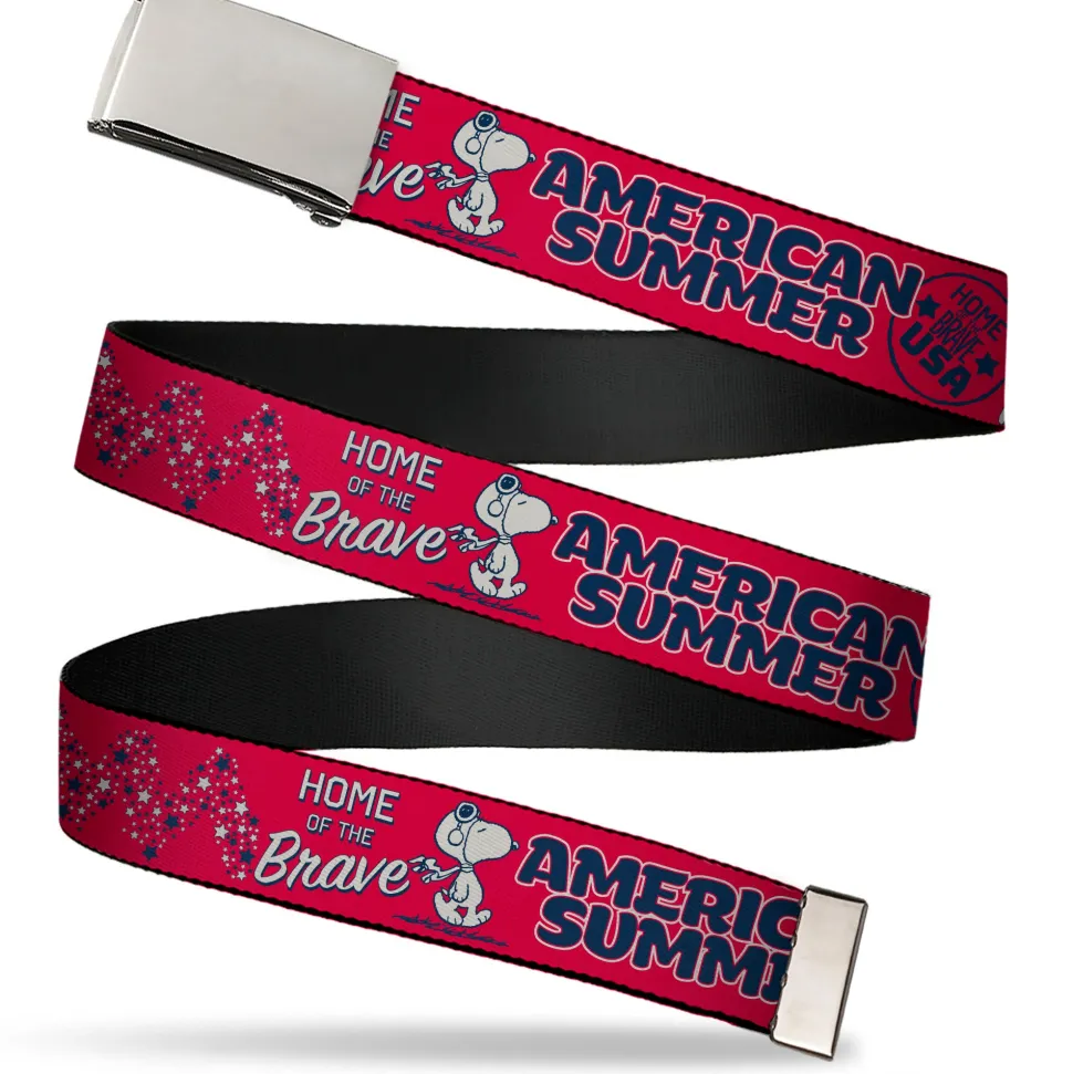 This unique web belt features a solid plain military-style clasp Buckle. It features beautiful artwork which is dyed into the fabric to ensure it looks great for years. This belt is available in 1.0″, 1.25″, and 1.5″ widths. 1.0″ wide belt is sized for children and adults with pants size 30 or lower. 1.25″ and 1.5″ wide belts are sized for adults, fitting up to pant size 42. This web belt is made from high-density nylon and steel. 1.5″ wide belt also has a bottle opener built into the back of the buckle! This product is Made in the USA by Buckle-Down Inc. and is officially licensed by Peanuts Worldwide LLC.