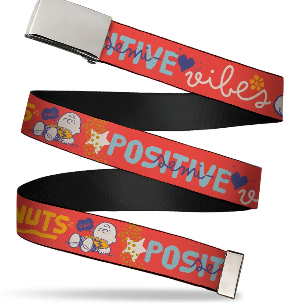 Web Belt Clamp Buckle – Peanuts Gang SEMI-POSITIVE VIBES Quote Red/Blues/White Webbing