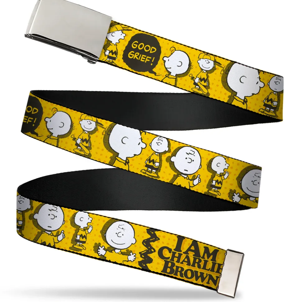 Web Belt Clamp Buckle – Peanuts I AM CHARLIE BROWN Poses and Zig Zag Stripe Yellows/Black Webbing
