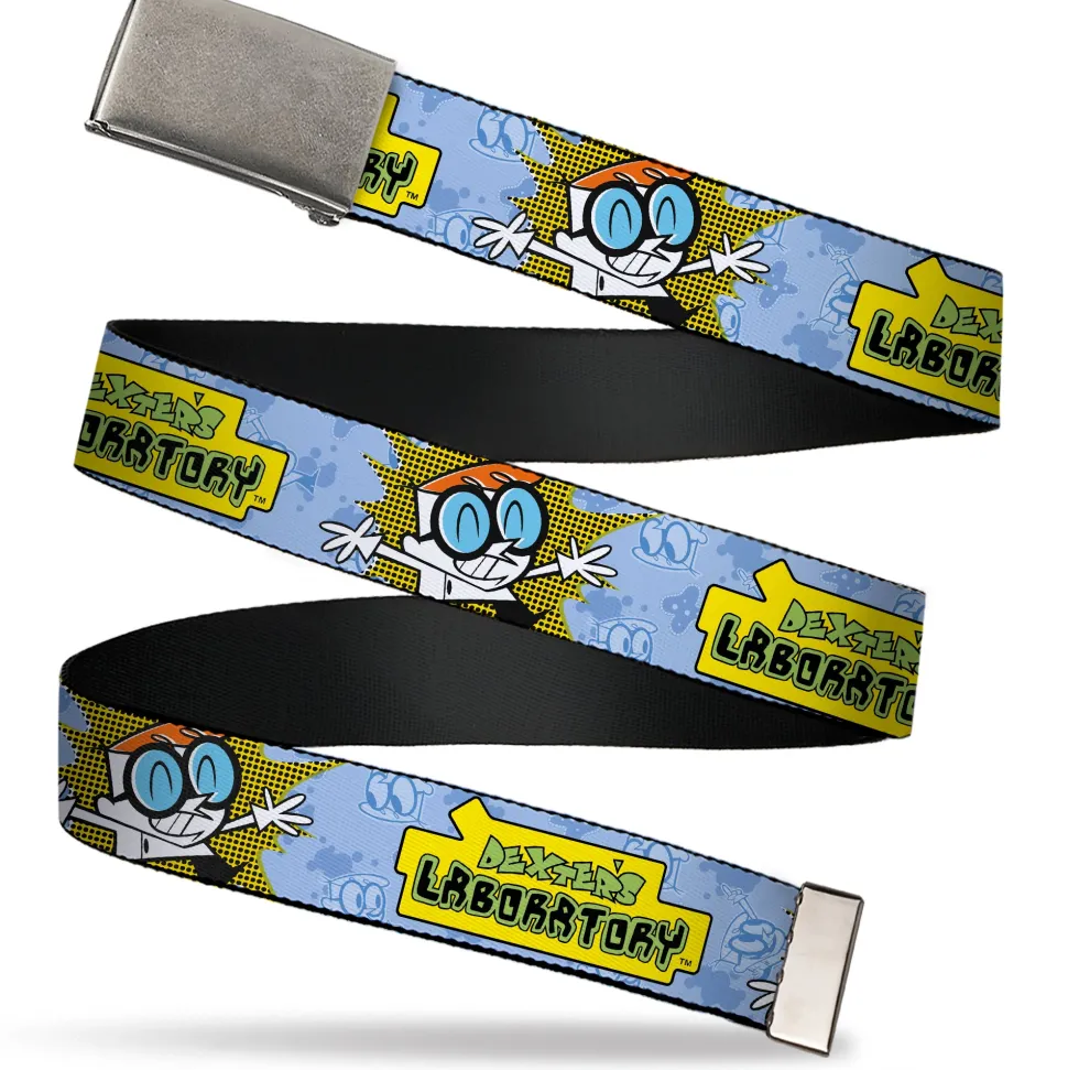 Web Belt Clasp Buckle – DEXTER'S LABORATORY Title Logo and Dexter Pose Blues/Yellow/Black Webbing