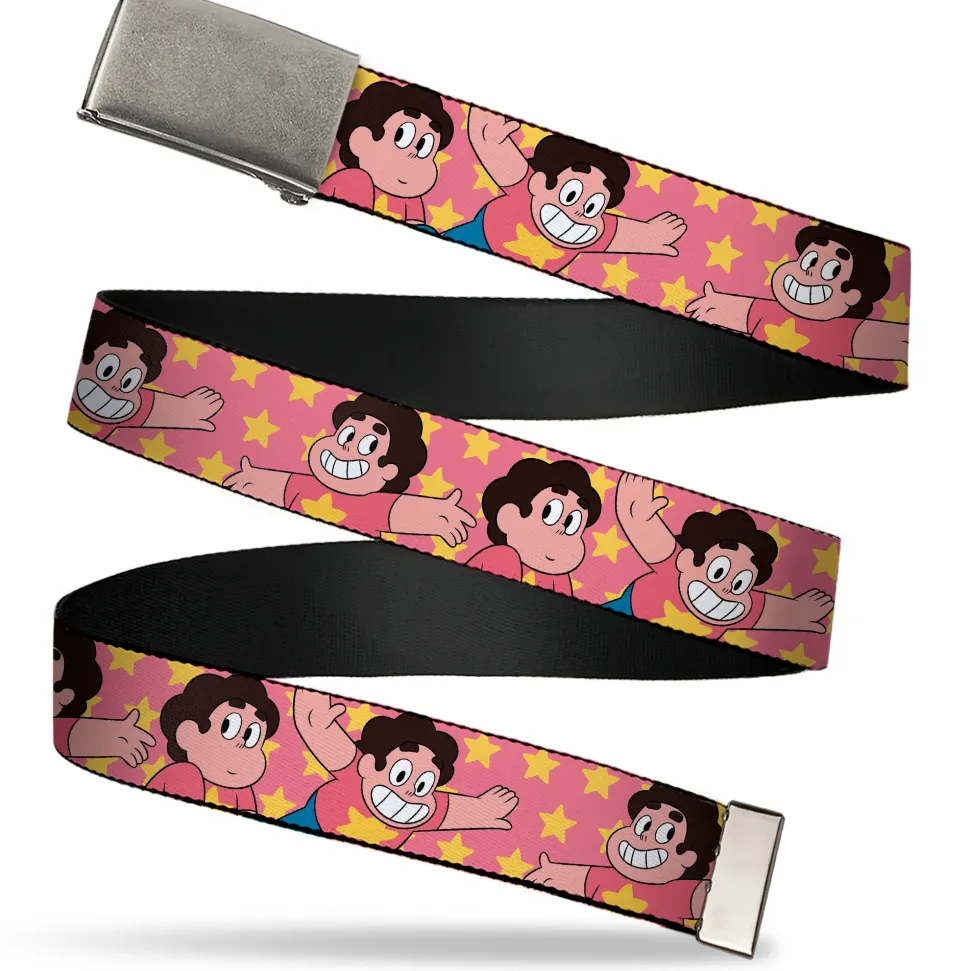 Web Belt Clasp Buckle – Steven Universe Poses and Stars Pink/Yellow Webbing